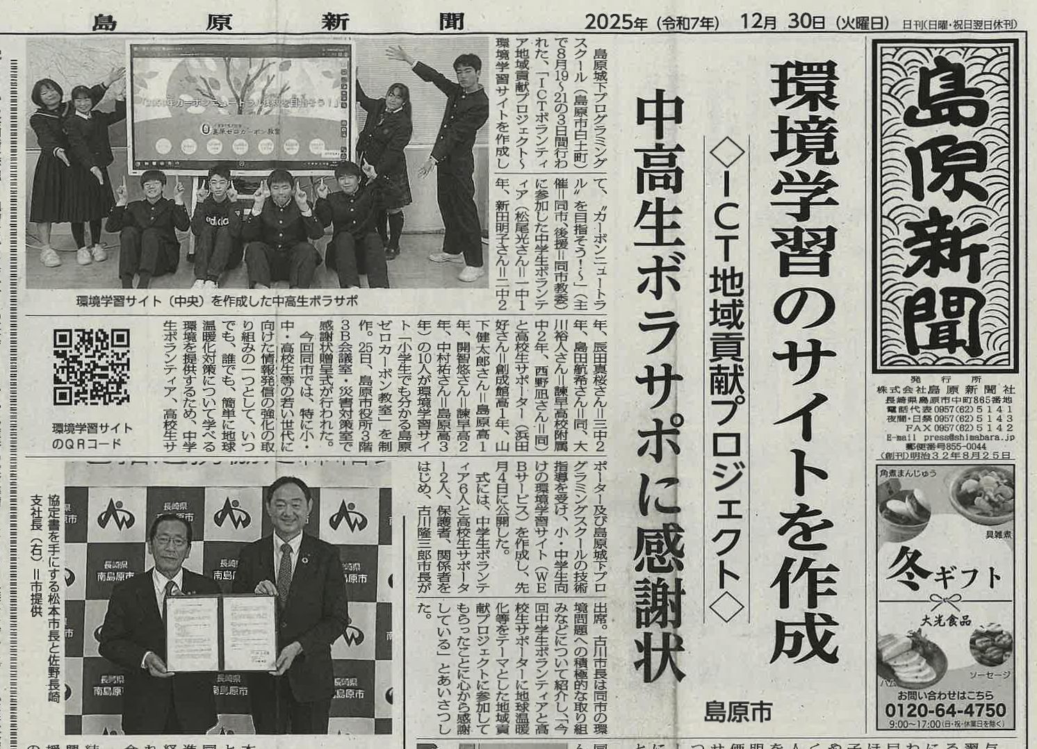 今夏実施したICTボランティア地域貢献プロジェクトでは小中学生向けカーボンニュートラル学習サイト『小学生でもわかる島原ゼロカーボン教室』を作成しました。